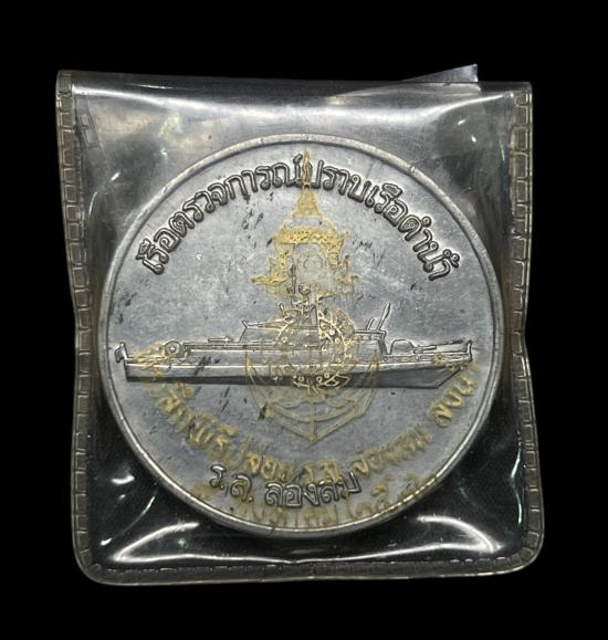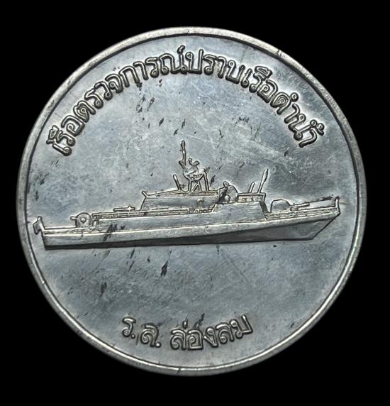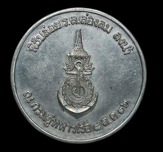 เหรียญพิธีปล่อย เรือตรวจการ ณฺบราบเรือดำน้ำ เริอหลวงล่องลม กรมอู่ทหารเรือ ซองเดิม ปี2532 ขนาด 4เซนติเมตร