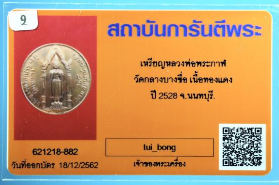 เหรียญกลมหลวงพ่อพระกาฬ วัดกลางบางซื่อ จ.นนทบุรี เนื้อทองแดง ปี 2528 เหรียญสวย+ บัตร G ครับ