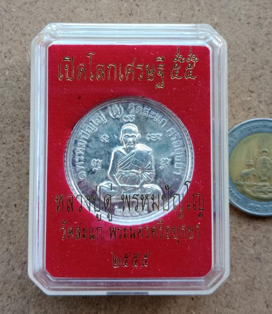 เหรียญยันต์ดวง เหรียญหลวงปู่ดู่วัดสะแก รุ่นเปิดโลกเศรษฐี ๕๕ เนื้อเงินลงยาแดง ปลุกเสกโดย ลพ รวย.ลพ เพิ่ม.ลพ พูน และพระเกจิดัง สายอยุธยาฯ หมายเลข 648 พร้อมกล่อง ตามรูป