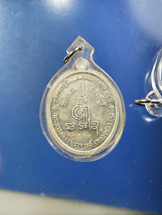 เหรียญไข่ 7 รอบ เนื้อเงิน หลวงพ่อจรัญ วัดอัมพวัน เลี่ยมพลาสติกกันน้ำ สวยเดิม เคาะแรก
