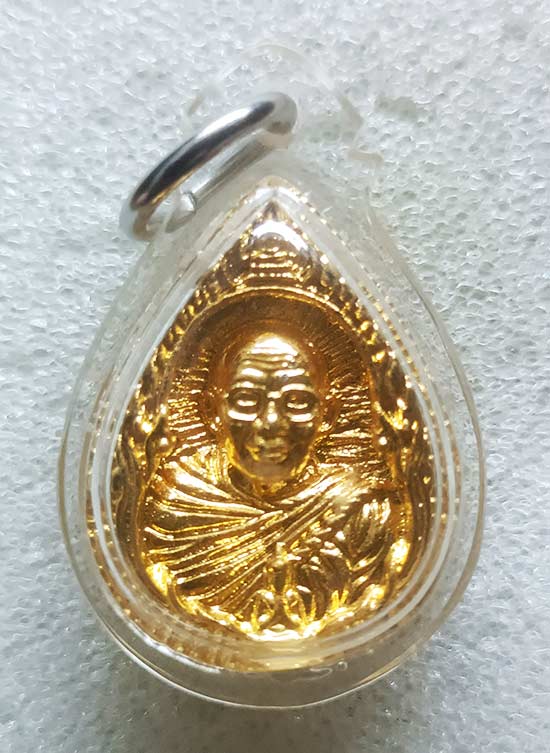 พระรูปเหมือนใบโพธิ์ ( หยดน้ำ ) หลวงพ่อฤาษีลิงดำ วัดท่าซุง ปี 2535 จ.อุทัยธานี สภาพสวย พร้อมเลี่ยม |