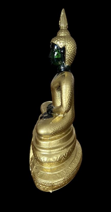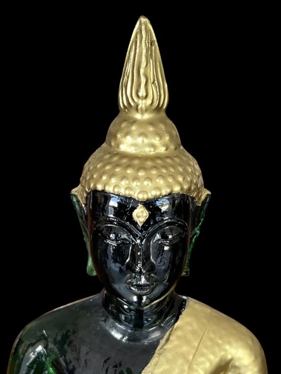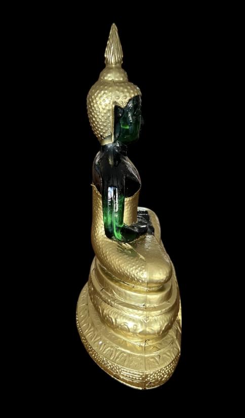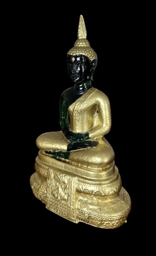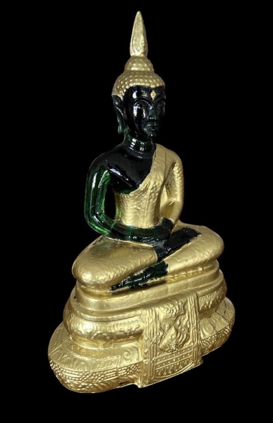 พระแก้วพิธี 25 พุทธศตวรรษ พระแก้วปฏิมากร สำนักรัตนปฏิมากร เนื้อแก้วสีเขียวกระไหล่ทอง หน้าตัก 5.5 นิ้ว (จะใหญ่กว่าพระแก้ว 5 นิ้วทั่วไปครับ) สภาพสวยสมบูรณ์ครับ