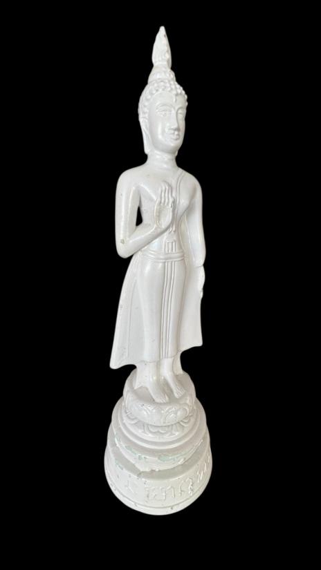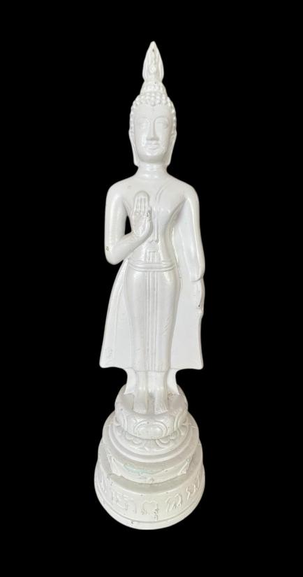 พระแก้วพิธี 25 พุทธศตวรรษ บล็อค JAPAN ปางห้ามญาติ ประจำวันผู้เกิดวันจันทร์ เนื้อแก้วสีขาวหยก สูง 13 นิ้ว สภาพสวยครับ