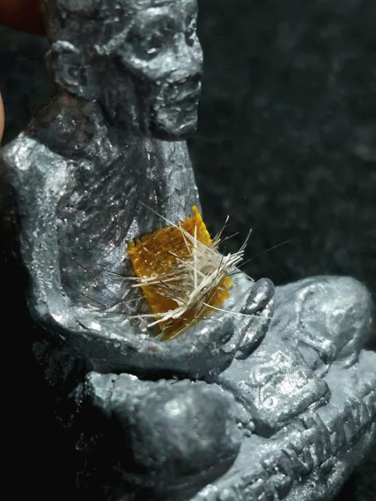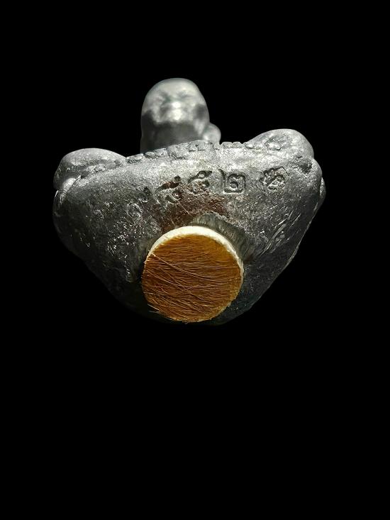 (ตอกโค้ดและหมายเลขกำกับใต้ฐานอุดผงปถมัง ปิดทับด้วยหนังเสือ, ฝังเกศา, จารยันต์ด้วยมือทั้งองค์) |