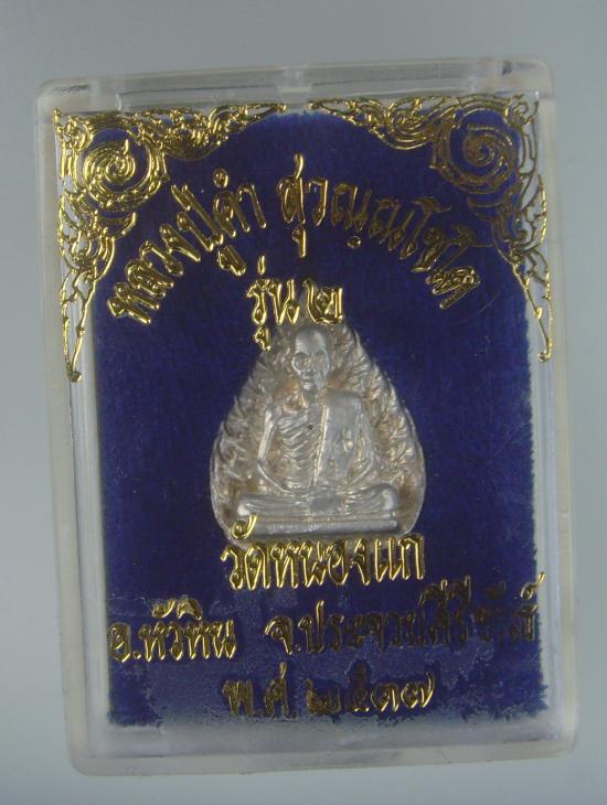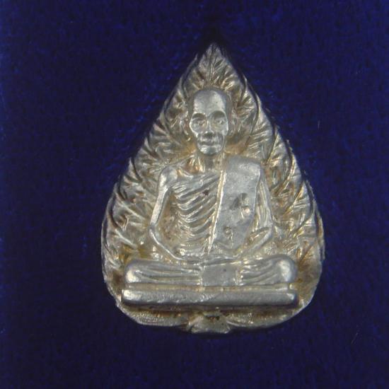 เหรียญหล่อใบโพธิ์ หลวงปู่คำ วัดหนองแก อ.หัวหิน จ.ประจวบ จัดสร้างปี 2537 เนื้อเงิน/สร้างน้อย 185 องค์ สวยเดิม กล่องเดิม