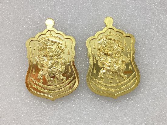 เหรียญรูปเหมือน หลังหนุมาน8กรขี่สิงห์ รุ่น มหาเศรษฐี๘๐ หลวงพ่อเอื้อน วัดวังแดงใต้ จ.พระนครศรีอยุธยา เนื้อกะไหล่ทองลงยาสีแดง ,สีเขียว กล่องเดิม