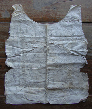 เสื้อยันต์เก่า ไม่ทราบที่ ขนาดกว้างยาว 16x20 นิ้ว ค่ะ
