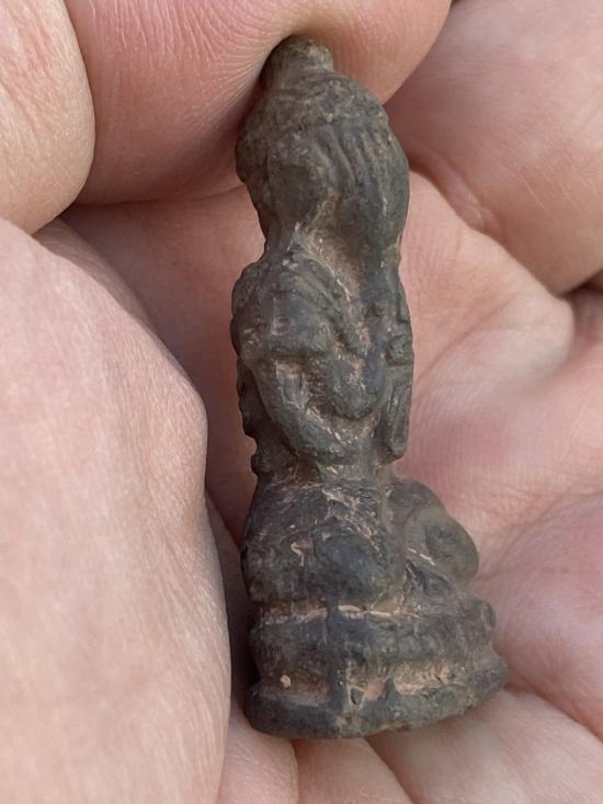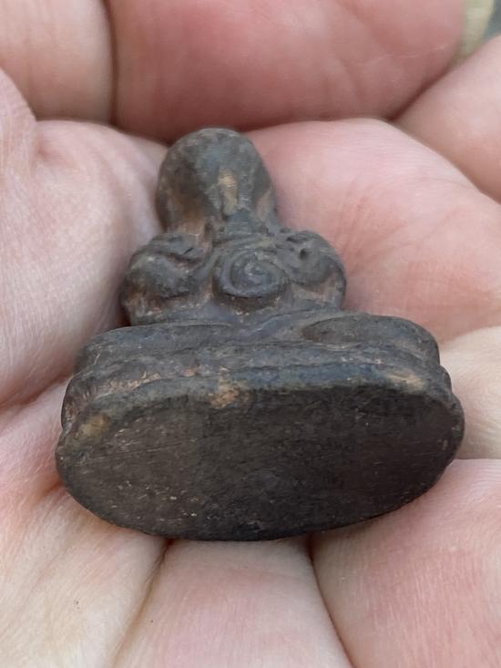 พระปิดตาลอยองค์ เนื้อผงใบลาย ด้านหน้ามียันต์ตรงท้อง และด้านหลังมียันต์ ไม่ทราบที่ครับ เคาะเดียวพอครับรับประกันตามกฎ