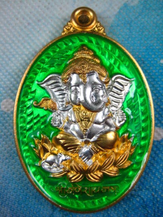 พระพิฆเนศ เนื้อ 2K ลงยาสีเขียว วัดสนามชัย จ.อ่างทอง (---A4---)
