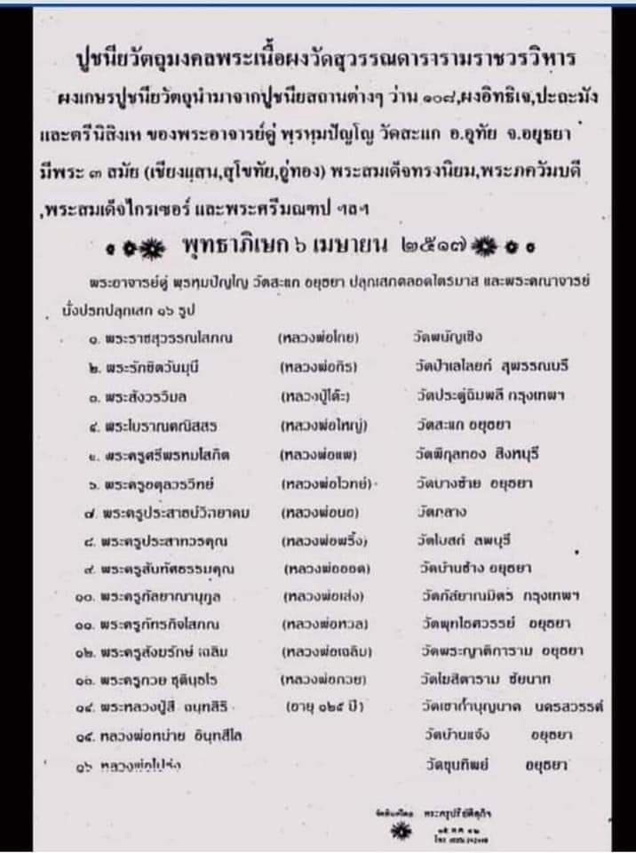 พระสมเด็จพระพุทธศรีมณฑป ปลุกเสกพิธีจตุรพิธพรชัย 2518 หลวงปู่สี หลวงพ่อนอ หลวงพ่อกวย หลวงพ่อออด หลวงปู่โต๊ะ หลวงพ่อแพ หลวงพ่อพริ้ง หลวงปู่ดู่ และอีกหลายคณาจารย์ร่วมปลุกเสก พระดีพิธีใหญ่พิธีจตุรพิธพรชัย 2518 |