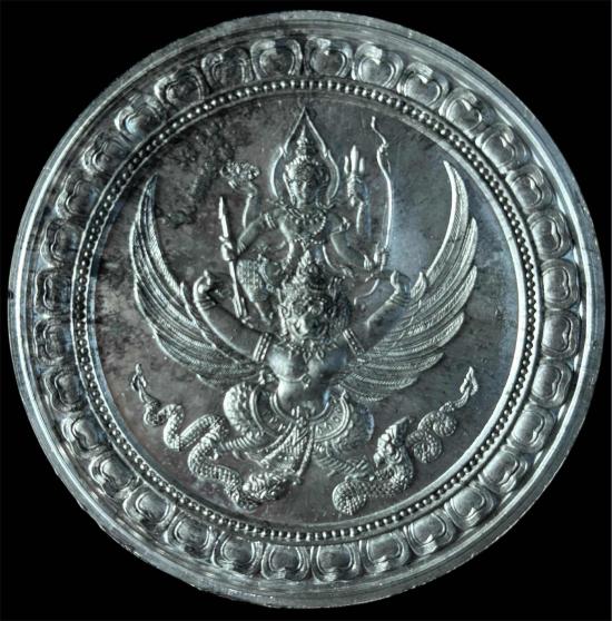 บาตรน้ำมนต์ (มหาพิทักษ์) หลวงปู่เผือก วัดสาลีโข พิมพ์หลังนารายณ์ทรงครุฑ ขอบเรียบ พิมพ์ใหญ่ นิยมสุด ปี2534 จ.นนทบุรี เนื้อชินเงิน พบเจอน้อย