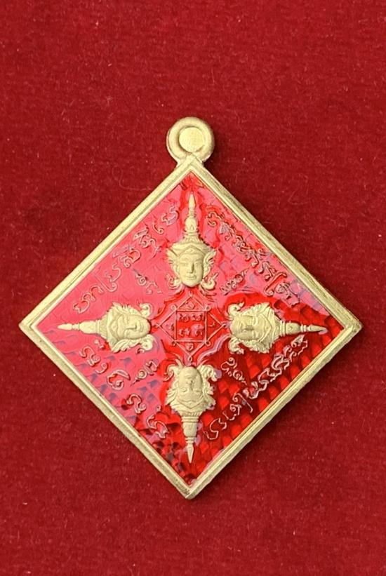 เหรียญพระพรหมสี่หน้า รุ่นยอดเมตตา หลวงปู่ศิลา สิริจันโท เมตตาอธิษฐานจิต เนื้อทองทิพย์ลงยาแดง |