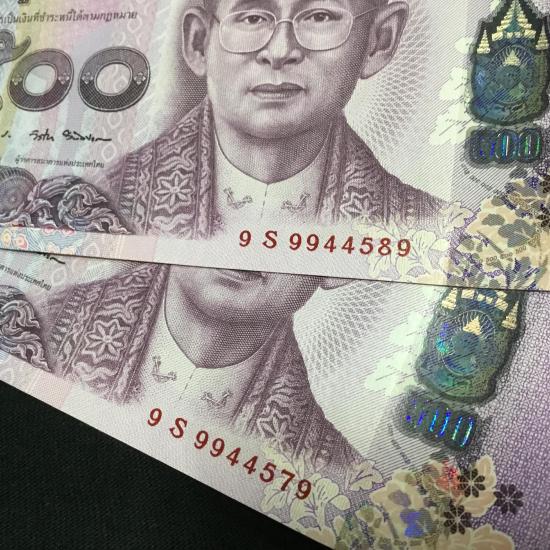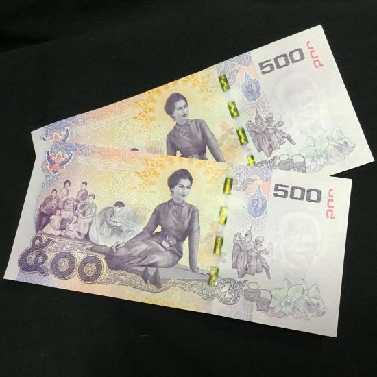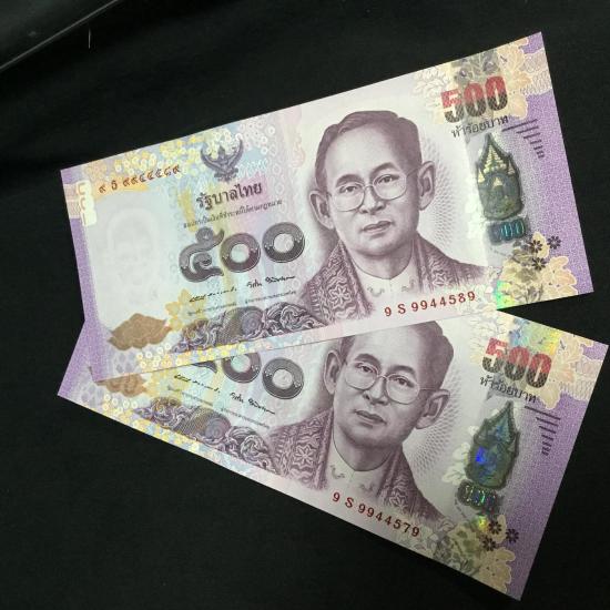 2 ฉบับ แบงค์ 500 พระราชินี ร9 หมวด9S- 99หน้า -9หลัง เลขมงคลทั้ง 2 ฉบับ