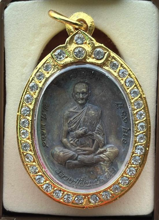 หลวงปู่ฝั้น ปสาโท วัดศรีถมอรัตน์(หน้าผา) เพชรบูรณ์ ท่านเป็นศิษย์ หลวงพ่อเดิม (สามเณรเลี้ยงช้างหลวงพ่อเดิม) หลวงพ่อกวย หลวงพ่อทบ รุ่น เจริญพร เหรียญหล่อชนวนพร้อมกรอบเลข 888