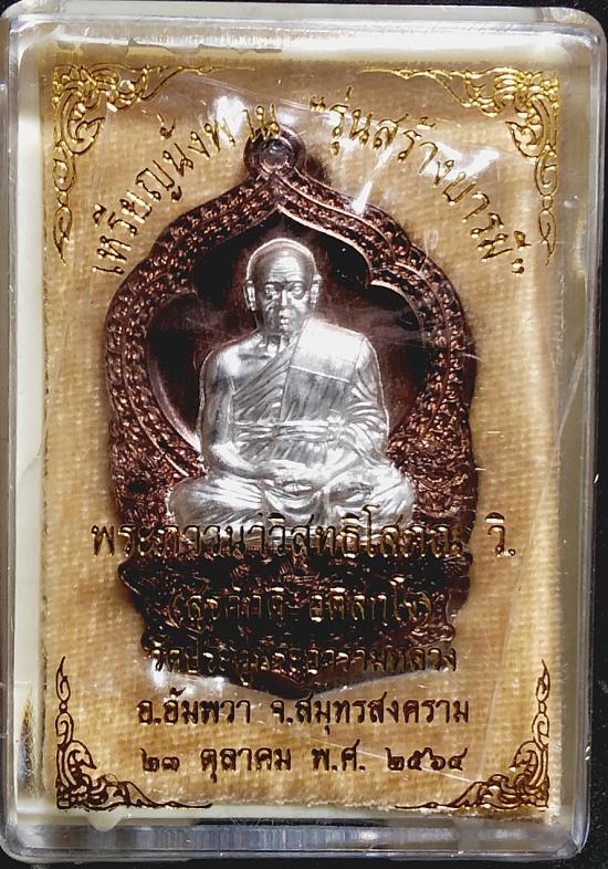 วัดใจ.....เหรียญสร้างบารมี พระมหาสุรศักดิ์ วัดประดู่ เนื้อนวโลหะสอดไส้เงินหมายเลข 57 เลข 2 หลักพบเจอน้อย ไม่จาร รับประกันเหรียญจริงสวยมากๆ พร้อมกล่องเดิมๆจากวัดครับ