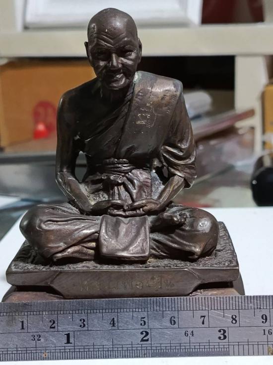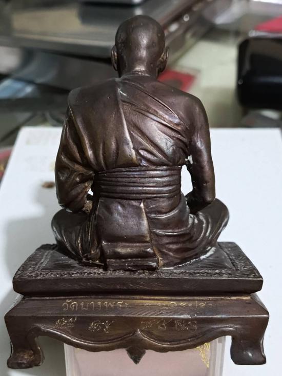 พระบูชานั่งธรรมาสน์ หลวงพ่อเปิ่น วัดบางพระ ปี43 ก้นอุดเหรียญพระผง ขนาดฐาน 3.5 นิ้วสูง 4.5 นิ้ว มีจารย์รอบและแป้งเจิม เนื้อโลหะมันปู สวยเดิมๆ