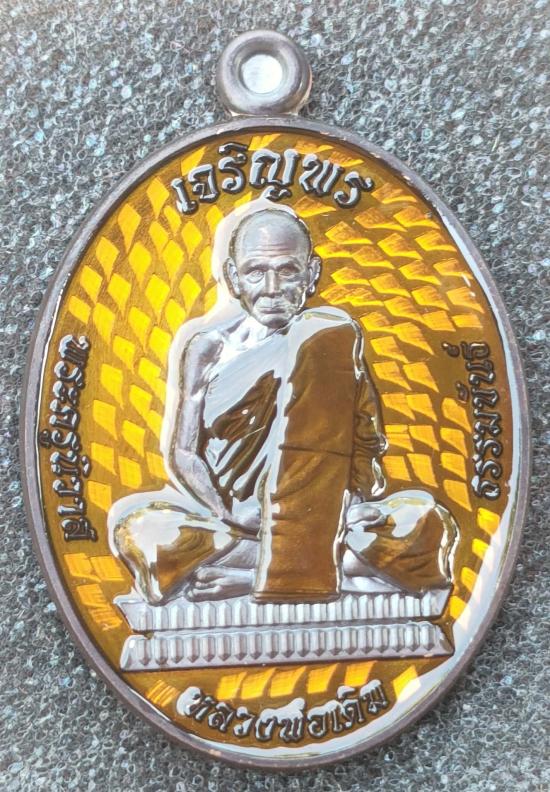 เหรียญหลวงพ่อเดิม พุทธสโร ที่ระลึกในงานสมโภช ๑๐๐ ปี อุโบสถหลวงพ่อเดิม วัดพนมรอก จ.นครสวรรค์ เนื้อทองแดงมันปู ลงยาเหลือง ลงยาจีวร หมายเลข ๗ พร้อมกล่อง ลูกศิษย์สายลพ.เดิม,ลพ.พรหม ปลุกเสก