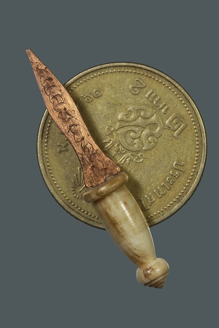 วัดใจ**เครื่องราง พระขรรค์สาริกา ใบเนื้อทองแดง+ด้ามงาแกะ สวย....เดิมๆครับ |