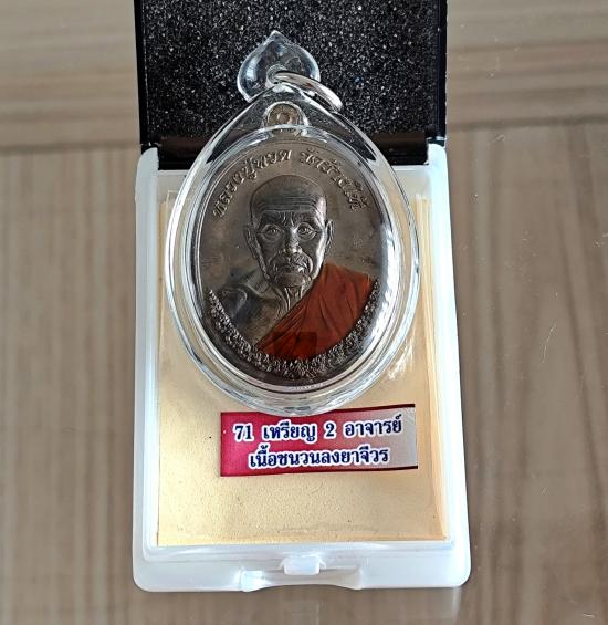 เหรียญ2อาจารย์ หลวงปู่ทวด-หลวงปู่ดู่ รุ่นเจ้าสัวพันล้าน (บอย ท่าพระจันทร์) เนื้อชนวนลงยาจีวร โค๊ตเลข ๑๓๔๐ กล่องเดิม พร้อมเลี่ยมกันน้ำ ไม่ผ่านการใช้