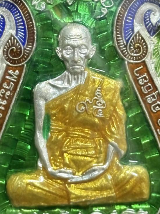 HOT!!! เหรียญไตรมาส 5995 เนื้อเงินลงยาสีเขียว เหนี่ยวทรัพย์ เลขโค๊ด 6467 หลวงพ่อรวย วัดตะโก