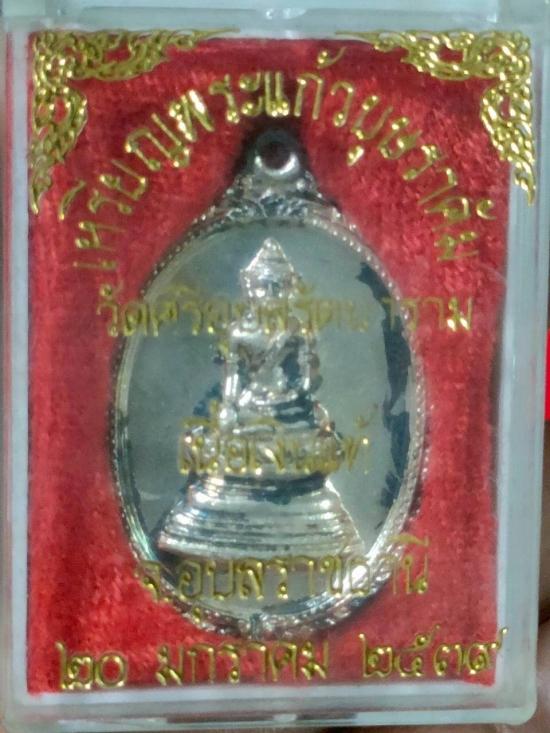 เหรียญพระแก้วบุษราคัม วัดศรีอุบลรัตนาราม จ.อุบลธานี ปี2539 เนื้อเงิน กล่องเดิมๆ