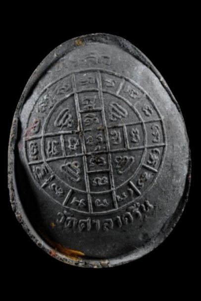 เนื้อผงใบลาน หลังยันต์ดวง ฝังตะกรุด 1 ดอก