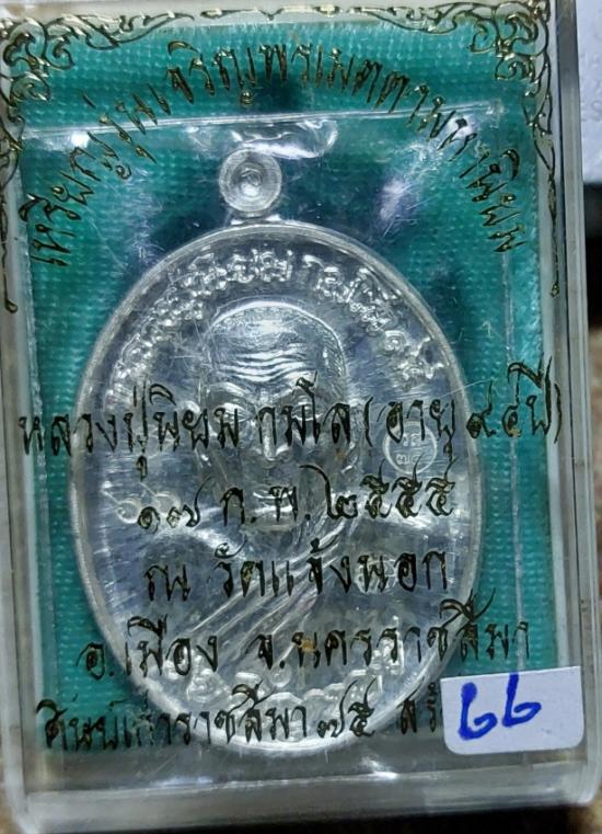 เหรียญเจริญพรเมตตามหานิยม หลวงปู่นิยม กมโล ๙๔ ปี เนื้อเงิน เลขเบิล ๖๖ วัดแจ้งนอก ปี 2555