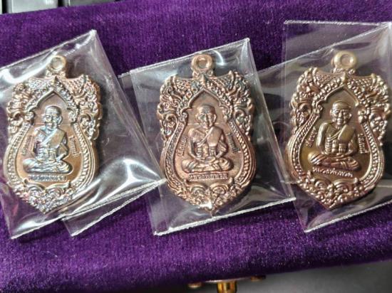 หมายเลข 8 : เหรียญหลวงปู่ทวด พ่อท่านเขียว กิตติคุโณ วัดห้วยเงาะ ตำบลทุ่งพลา อำเภอโคกโพธิ์ จังหวัดปัตตานี ปี พ.ศ. 2556 รุ่น เลื่อนยศ ปลดหนี้ รับทรัพย์ ชุดกรรมการ (3) สร้าง 1,000 ชุด เนื้อนวโลหะชนวน เลื่อนยศ / เนื้อนวโลหะชนวน ปลดหนี้ / เนื้อนวโลหะชนวน รับทรัพย์ พร้อมกล่องกำมะหยี่เดิม