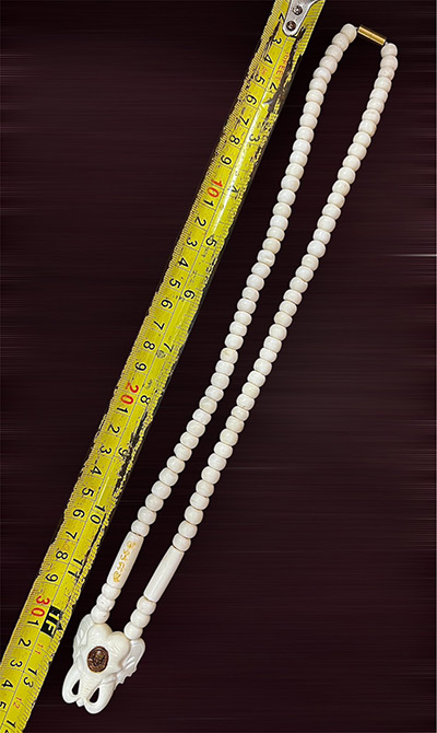 เคาะเดียวแดง สร้อยกระดูกช้าง ฝังเหรียญเม็ดแตง หลวงปู่หงษ์ พรหมปัญโญ สุสานทุ่งมน จ.สุรินทร์ ปี 2555 เส้นรอบวง 26 นิ้ว จารมือเต็มสูตร สร้างน้อย น่าบูชามากค่ะ... |