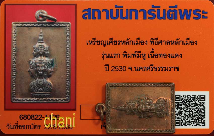 เหรียญ เศียรหลักเมือง พิธีศาลหลักเมือง รุ่นแรก พิมพ์มีหู เนื้อทองแดง ปี2530 จ.นครศรีธรรมราช สภาพสวยเดิมๆยังพอมีผิวไฟ หายาก พร้อมบัตรรับรองพระแท้จากจีพระอุ่นใจได้ ไม่ต้องลุ้นค่ะ |