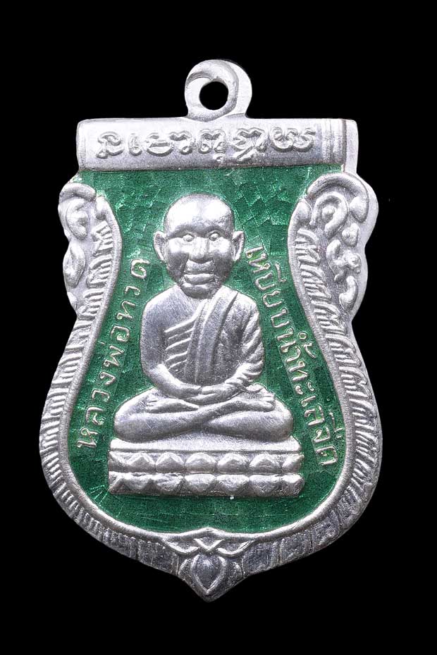 รายละเอียด หลวงปู่ทวด เหรียญเสมาหัวโต เนื้อเงินลงยาเขียว หลวงพ่อทอง วัดสำเภาเชย ปัตตานี รุ่นสุวรรณมงคล ปี 2548