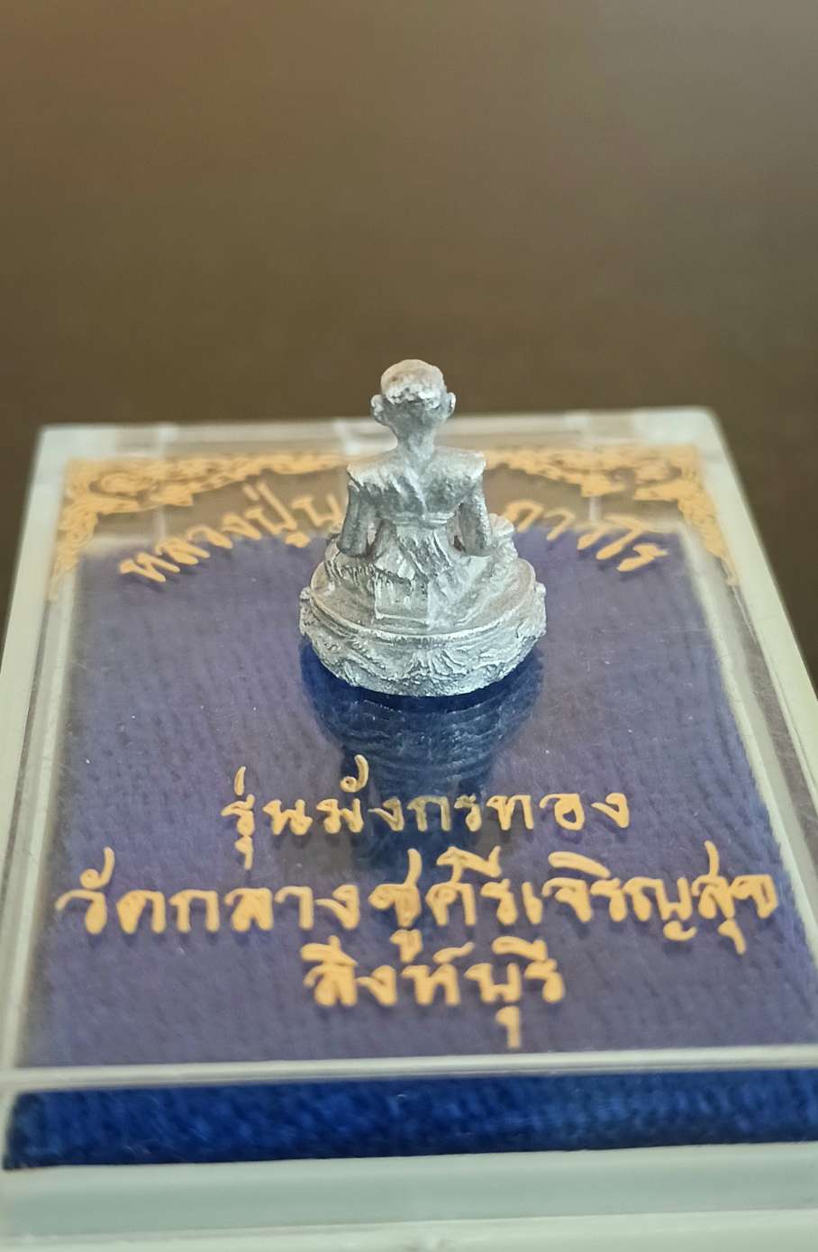 หล่อรูปเหมือน หลวงปู่บุดดา สิงห์บุรี เนื้อเงิน สวยในกล่องเดิม |
