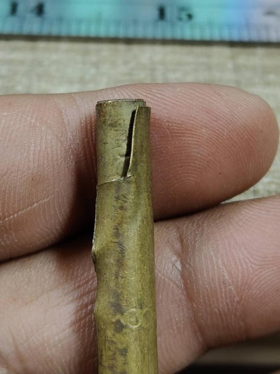 A6327.ตะกรุดเก่า ไม่ทราบที่ ขนาดยาว 2.8 นิ้ว เคาะเดียวเเดง