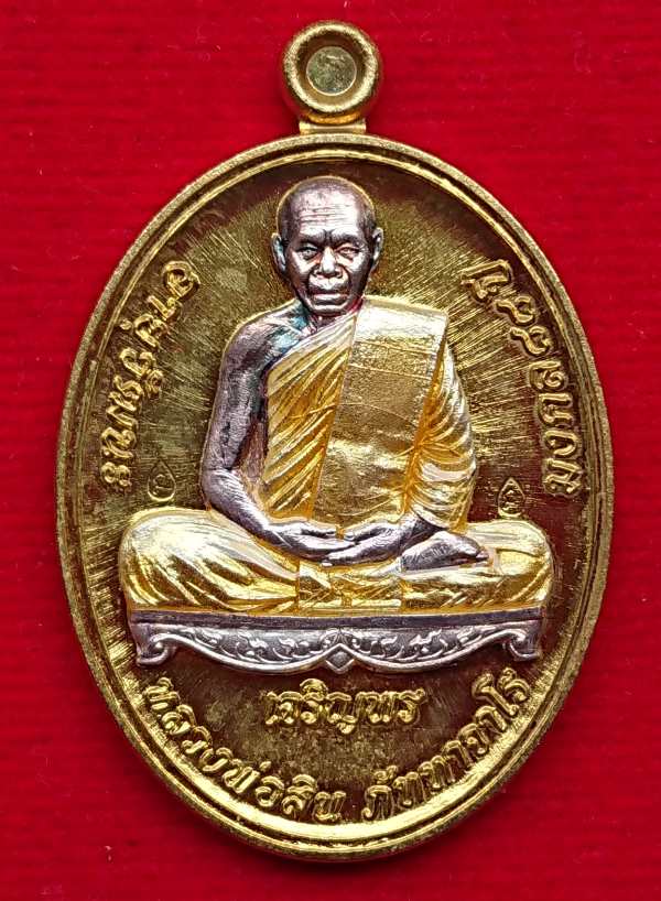 1ใน588เหรียญ เหรียญเจริญพรล่าง อายุวัฒนะ มงคล 88 ปี หลวงพ่อสิน วัดละหารใหญ่ เนื้อทองฝาบาตรหน้ากากเงินลงยาจีวรเหลือง