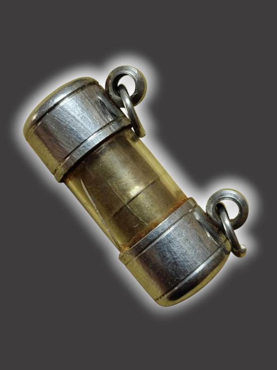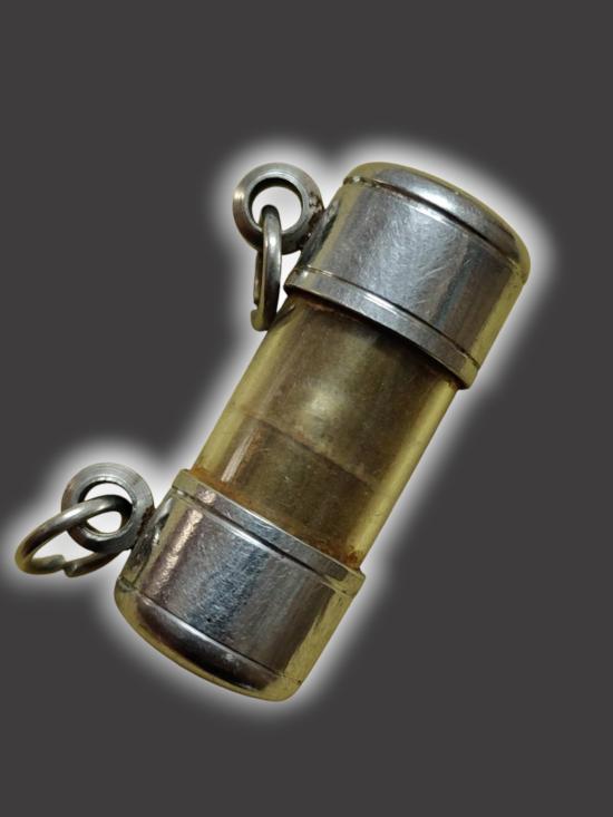 A6331.ตะกรุดปอกลูกปืน เลี่ยมสเเตนเลสพร้อมใช้ ไม่ทราบที่ครับ เคาะเดียวเเดง