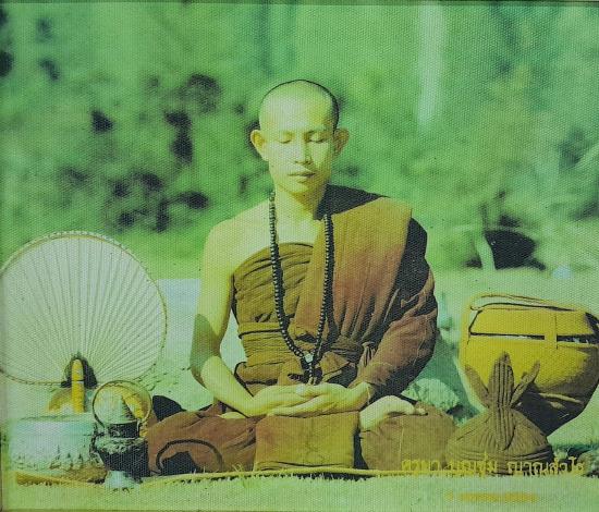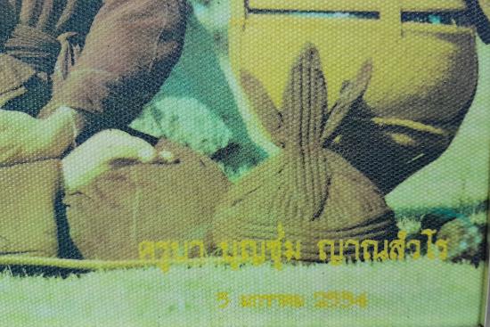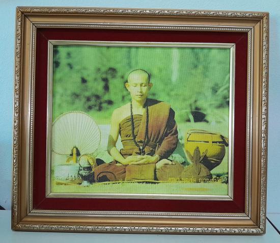 ** เคาะเดียว ** ภาพพิมพ์ผ้าใบเก่า ครูบาบุญชุ่ม ปี 34 พร้อมกรอบ ค่ะ