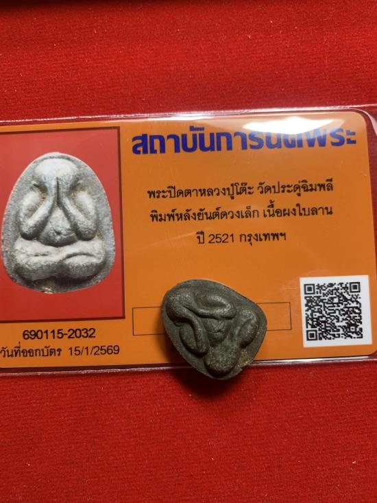 พระปิดตาหลวงปู่โต๊ะปี 21 เนื้อใบลาน พิมพ์ยันต์ดวงเล็ก เดิมหนามาพร้อมบัตรรับรองครับสบายใจได้ครับ