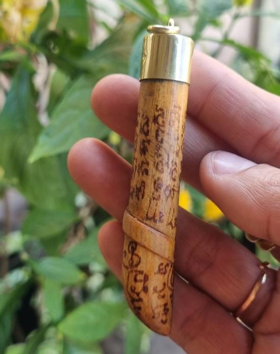 ปลัดขิก เนื้อไม้มงคลจารอักขระยันต์ด้วยมือโดยรอบ เลี่ยมพร้อมใช้ ไม่ทราบที่