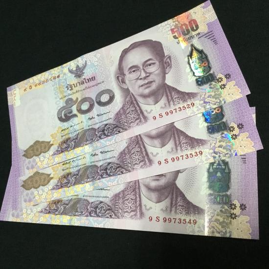 3 ฉบับ แบงค์ 500 พระราชินี ร9 หมวด9S- 99หน้า -9หลัง เลขมงคลทั้ง 3 ฉบับ