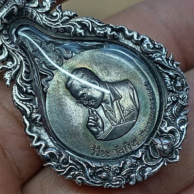 เหรียญพระมหาชนก พิมพ์เล็ก ปี2542 (เนื้อเงิน) พร้อมเลี่ยมกรอบเงินแท้ งาน 92.5% ขึ้น งานมือหนึ่ง กรอบหนา รมดำ สวยๆ classic. ((พระคัดสวย )) |