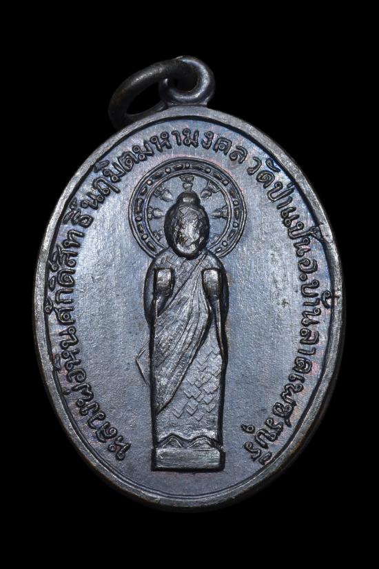 เหรียญหลวงพ่อหินศักดิ์สิทธิ์ วัดป่าแป้น จ.เพชรบุรี พิมพ์มีโซ่ นิยม เนื้อทองแดง ปี2516 |
