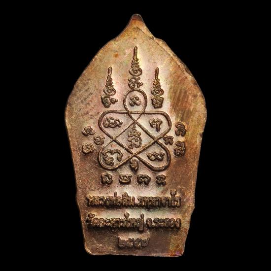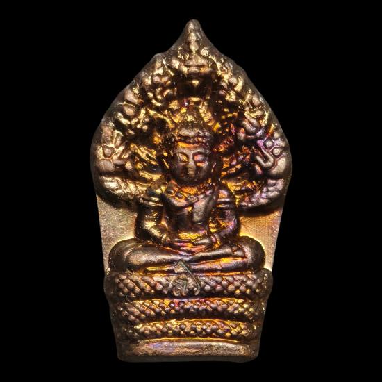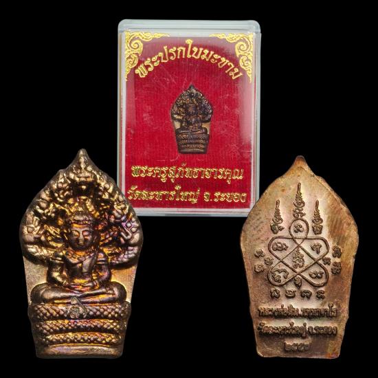 พระปรกใบมะขาม พระครูสุภัททาจารคุณ (หลวงพ่อสิน ภัททาจาโร) วัดละหารใหญ่ จ.ระยอง ๒๕๕๗ เนื้อทองแดง ตอกโค๊ต พร้อมกล่องเดิม