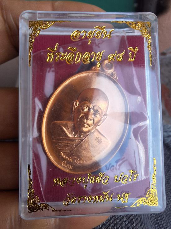 เหรียญหลวงปู่แผ้วเนื้อทองแดงรุ่นที่ระลึกรุ่น ลายเซนต์ เฮง เฮง รวย รวย98ปีพร้อมกล่องเดิมๆ |