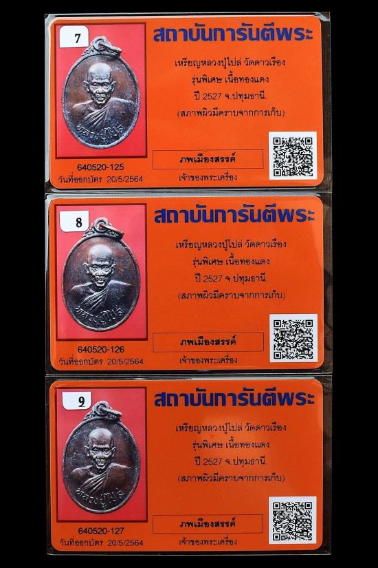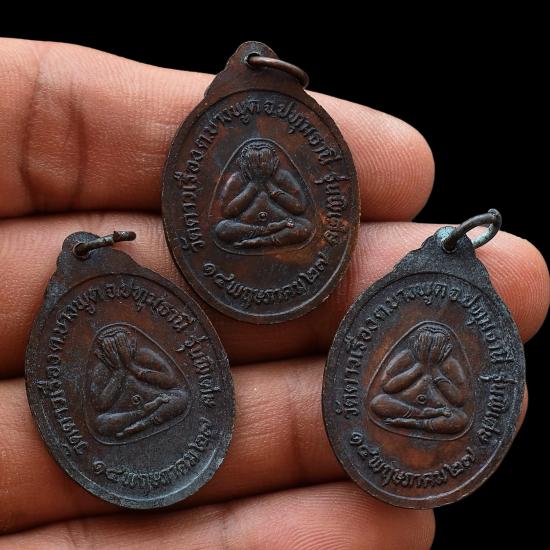 *** วัดใจ 300 แดง *** ชุด 3 องค์...เหรียญหลวงปู่ไปล่ วัดดาวเรือง รุ่นพิเศษ เนื้อทองแดง ปี 2527 จ.ปทุมธานี + บัตรพระแท้การันตีพระ สภาพพระตามรูปที่ลงทุกประการ