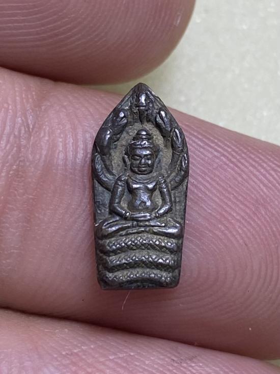 ปรกใบมะขาม รุ่นแรก หลวงพ่อนอ วัดกลางท่าเรือ พ.ศ.2513 เนื้อนวะโลหะ ตอกโค้ด