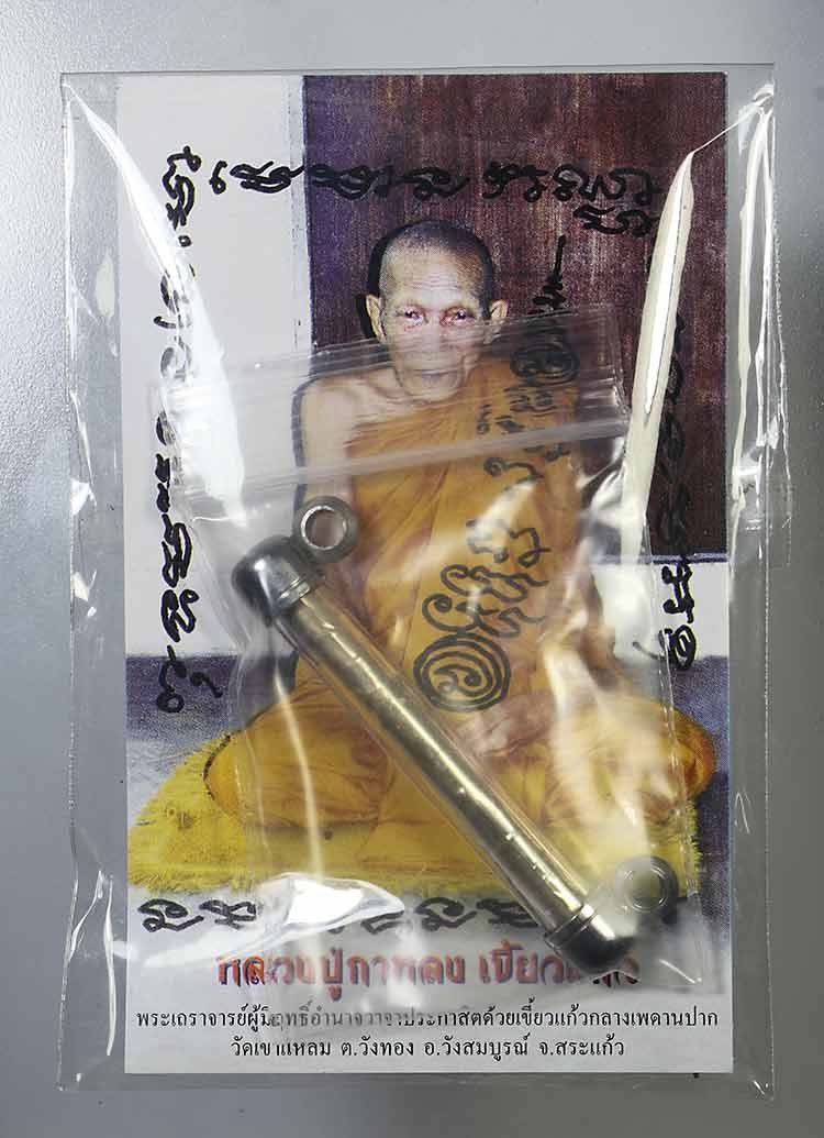 วัดใจ**เครื่องราง ตะกรุดปลดหนี้หรือตะกรุดกันผี กันคุณไสย แผ่นเงิน จารยันต์ด้วยมือ หลวงปู่กาหลง เขี้ยวแก้ว ความยาว 4 ซม. ใส่หลอด...พร้อมซองเดิมๆครับ |