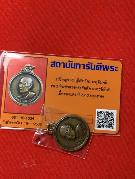 พระหลวงปู่โต๊ะปี 12 กลมกลาง 5 อิ เนื้อทองแดง จมูกโด่งสวยมาพร้อมบัตรรับรอง ครับ