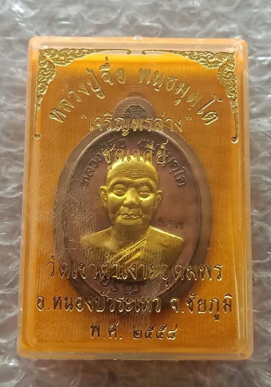 เหรียญเจริญพรล่าง ทองแดงมันปู หน้ากากฝาบาตร ไม่ตัดปีก หลวงปู่จื่อ วัดเขาตาเงาะอุดมพร อำเภอหนองบัวระเหว จังหวัดชัยภูมิ |