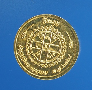 ช่องว่างระหว่างเหรียญลงจารมือด้วย อิสวาสุ หมายถึงหัวใจของพระพุทธเจ้าและตอกโค้ต ๙ หมายถึงความเจริญก้าวหน้าตลอดไปสำหรับผู้ใช้เหรียญนี้