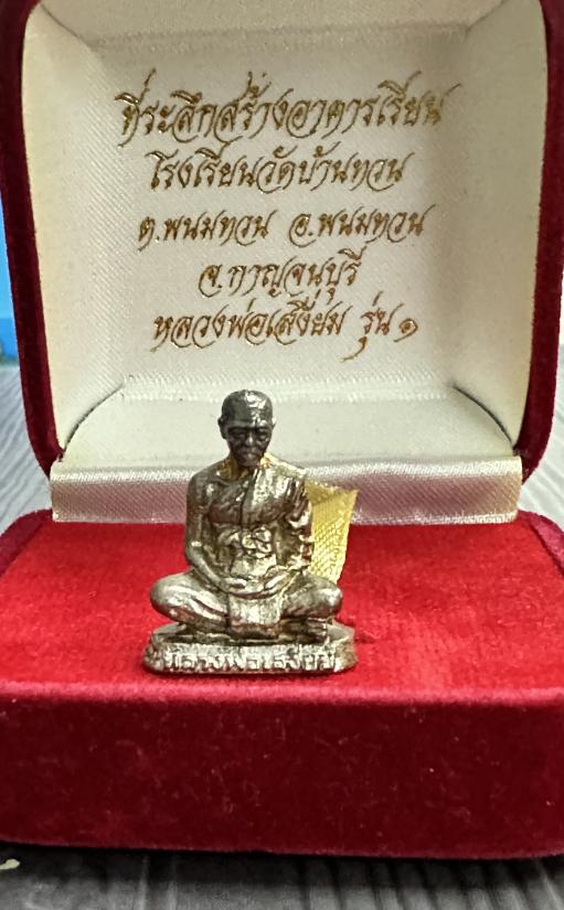 รูปหล่อเนื้อเงิน หลวงพ่อเสงี่ยม วัดบ้านทวน จ.กาญจนบุรี รุ่น สร้างอาคาร สวยเดิมๆคับพร้อมกล่องครับ
